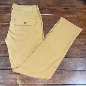 Stylish Prana women's pants in a versatile tan color. Features a comfortable fit with practical pockets and a drawstring waist