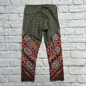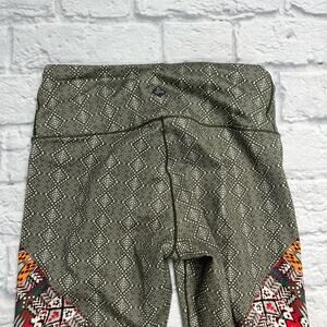 Prana Workout Leggings Tribal Print Size XS Olive Green Cropped Capri