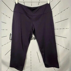 Prana Yoga Dark Purple Cropped Back Slit Hem Wide Leg Yoga Pants Size M