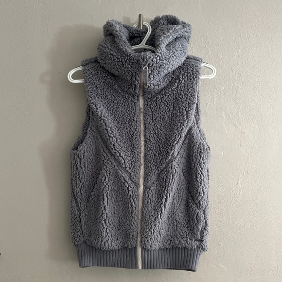Prana gray chevron sherpa vest with hood size small