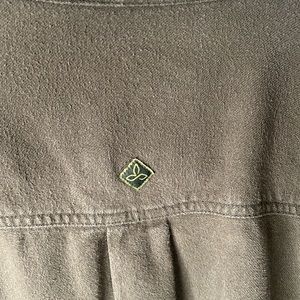 Pit to pit 23 inches. Top to bottom 33 inches. Prana Mens long sleeve button up. Green. Organic cotton