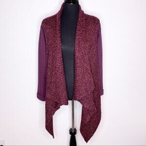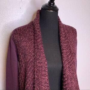 Prana maroon purple knit open front waterfall cardigan size Extra Small XS