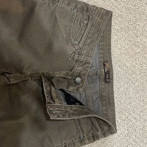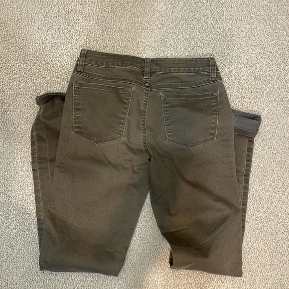 Dark grey / green color, great condition. Straight leg with a bit of boot cut. Can cuff or uncuff bottom.