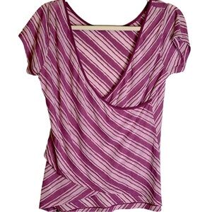 PRANA Serenity Pink Purple Burnout Stripe Wrap Top Medium Knit Tee.