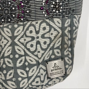 Prana quilted beaded ikat tote bag grey purple Bhakti