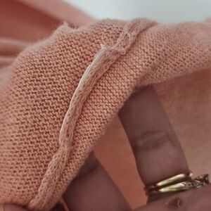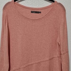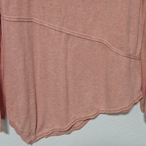 Prana knit sweater asymmetrical raw hem size large see pics for verification of size used no holes or stains has some fading missing material tags feels like cotton blend washed delicate and hung dry measurements approximately flat lay pit to pit 19 1/2 length 30 sleeve 28