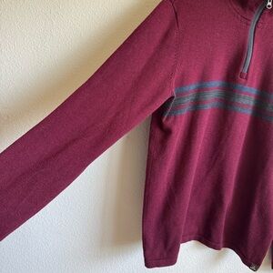 Prana wool blend 1/4 zip red stripe front casual sweater size small