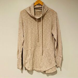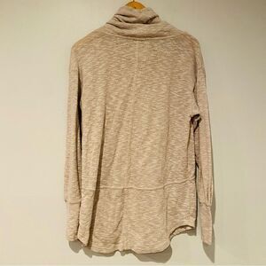 Turtle neck long sleeve pullover top with body seam detail and pouch pocket