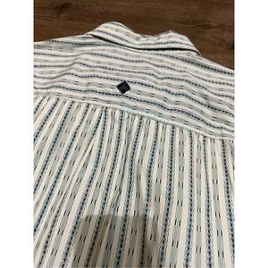 Prana Mens Striped Geometric Button Up Shirt Chest Pockets Organic Cotton Sz M