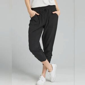 The Midtown Capri is constructed with a bluesign® approved recycled polyester 4-way stretch woven blend and moisture-wicking technology. The design features include a tipped drawcord, pocket bags, a back welt pocket, and a cinched bottom leg opening.