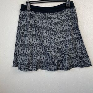 Classic and cute mini skirt by Prana measuring 14 inches at the elastic waist laying flat and 18 inches in length.