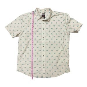 Prana Shirt Slim Fit Beige Organic Cotton Button Down Size XL Short Sleeve