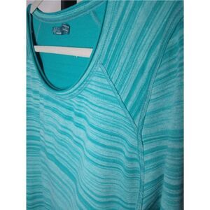 Prana Turquoise/Aqua Stripe Scoop Neck Long Sleeve Knit Top Size Large