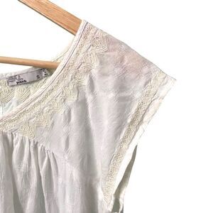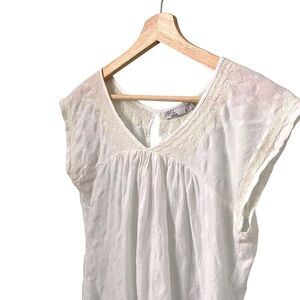Prana White Embroidered Blouse 100% Organic Cotton in Size Small