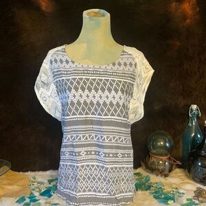 Excellent condition Lightweight material with no stretch (material tag removed) 18 inches pit to pit 26 inches long