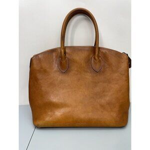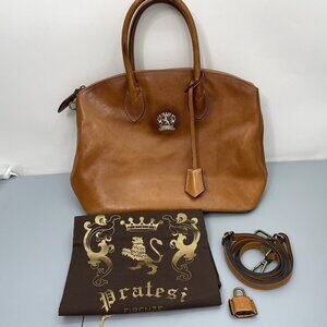 Pratesi Firenze Handbag Satchel Crossbody Bag Purse Top Zip Leather Cognac Brown