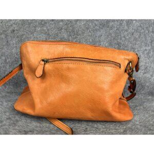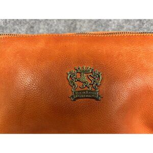 Pratesi Leather Crossbody Purse Bag Womens Orange Made in Italy Zip Pocket Logo