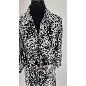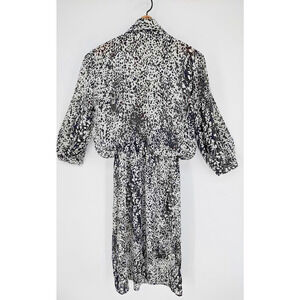 Prato Woman's VTG Black White Chiffon Blouson Midi Dress Size 14 Sheer Flowy LS