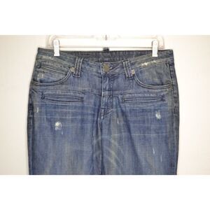 Pratts Women's 30 Dark Wash Distressed Stretch Flare Jeans