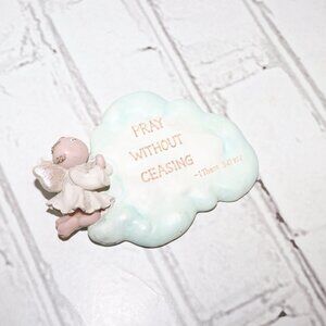 This 4.5" wall plaque features the timeless verse “Pray Without Ceasing” from 1 Thessalonians 5:17, rendered in soft pastel tones. In great condition and ready to hang, it’s perfect for prayer corners, spiritual bundles, or gentle home accents that inspire daily reflection.
