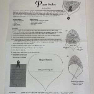 Write your prayer on a slip of paper and tuck it in a lace Prayer Pocket. Keep the prayer close to your heart with this easy to sew pocket. Pin it inside a blazer or on a lapel; slip it in a pocket with the lace flap over the edge; or add a magnet and hand it on the refrigerator. Pockets make elegant gifts for family and friends or are ideal projects for church groups/organizations.