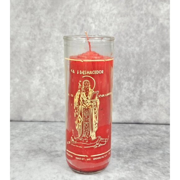 Prayer to Saint Undoer San Deshacedor Red Glass Candle Botanica Shamanic Spirituality 8.5"
