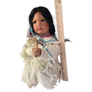 Praying Doll Native American Indian 2001 VTG Porcelain Kelly J RuBert Feathers