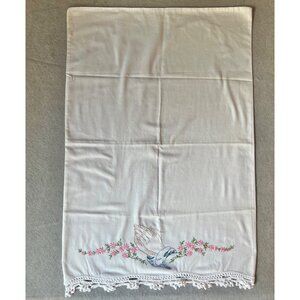 Small thread pull near embroidery. Pillowcase measures approximately 20 x 30 inches.