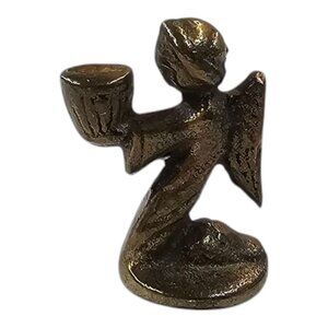 Praying Kneeling Angel Candle Holder 1.5" Miniature Vintage Brass Bronze Solid