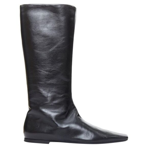 Pre Loved The Row Vintage Leather KneeHigh Square Toe Boots Women black | black
