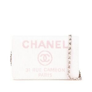 Preowned - Fair Condition. <br/>This wallet on chain features a canvas body a canvas woven chain strap a front flap with a magnetic closure and interior zip and slip pockets.Brand: Chanel VintageType: Crossbody BagMain Material: fabricDimensions (LxWxD): 12x18x2Strap Drop: 62Comments: Exterior Back stained . Exterior Corners stained . Embellishment Scratched. Exterior Front stained . Exterior Handle Worn. Interior Pocket stained . Interior Lining Creased Scratched. Interior Lining stained . Exterior Side stained . Zipper Scratched.