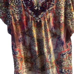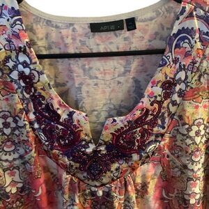 Pre Owned Women's Apt 9 Floral Flowing Blouse Sz XL Embrace Your Inner Hippie