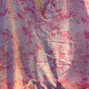 Elevate your scrub game with this Pre Owned Women's Tafford Scrub Top in a trendy pink paisley pattern.