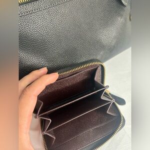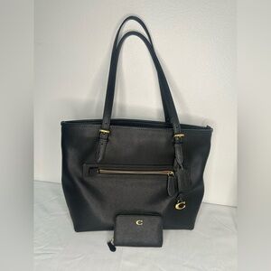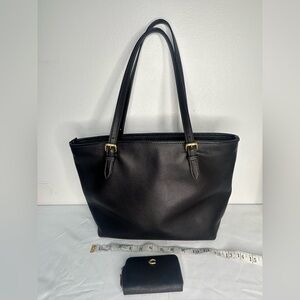 Pre- owned Coach Black Leather Tote and mini wallet with Sophisticated Trim