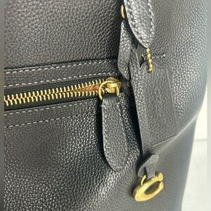 The Coach black leather tote is a refined accessory, featuring a minimalist design with double handles and a spacious interior. Its smooth leather finish and subtle contrasting trim detail exude timeless elegance, making it an ideal choice for everyday sophistication.