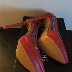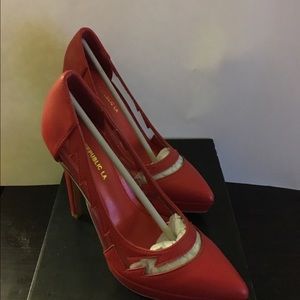 Never worn, clear side, pointed toe, 4" tall heels w/stack.