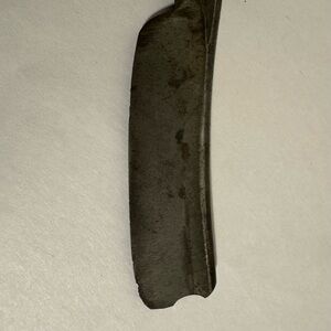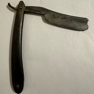 Rare “The Celebrated Fine India Steel Razor” 7/8” width, near wedge, barbers notch, original horn scales. Pre-owned condition. Experience a traditional shave with this vintage straight razor. Not shave ready.