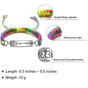 👍 HYPOALLERGENIC & INTERCHANGEABLE MEDICAL ALERT BRACELET: hypoallergenic medical alert bracelet and comes with interchangeable size options 6.0-8.5 inches (TOTAL LENGTH INCLUDED TAG)- Please measure your wrist PLUS 3/4 INCH for your bracelet size.