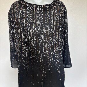 Pre-Loved Black Sheer blouse with tan and white polka dots and sporadic sequins