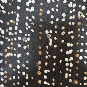 Pre-Loved Black Sheer blouse with tan and white polka dots and sporadic sequins sewn in. There is no brand listed. This shirt is in excellent condition with no visible flaws.