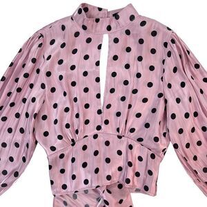 Pre-Loved Deco Lux Open Back Blouse Long Sleeve Crop Top Purple Black Dots US S
