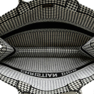 Pre-Loved Dior Large Canvas Houndstooth Embroidered Book Tote