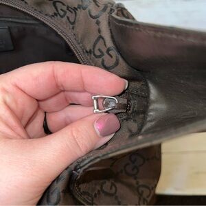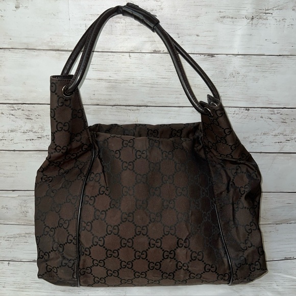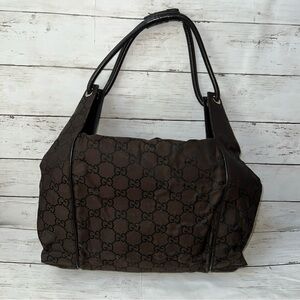 Pre-Loved Gucci GG Denim Brown Canvas Shoulder Bag