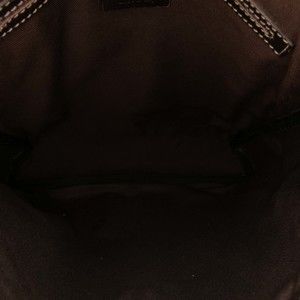 This crossbody bag features a coated canvas body with leather trim, an adjustable flat strap, a front flap with a magnetic closure, and an interior slip pocket. The strap was repainted. It carries a B+ condition rating.