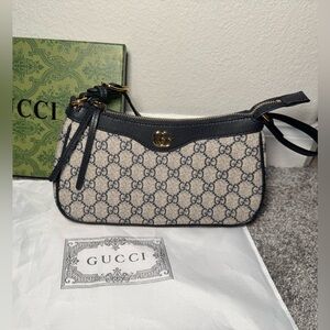 Exterior Back stained with Other. Embellishment Scratched. Exterior Front stained with Other. Exterior Handle stained with Other. Interior Pocket stained with Other. Interior Lining stained with Other. Exterior Top stained with Other. Zipper Scratched.