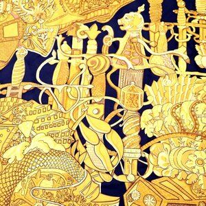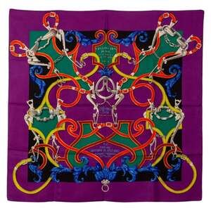 This scarf features the Grand Uniforme print on 100% silk. It carries a B+ condition rating.