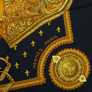 This scarf features a Selles A Housse print on 100% silk. It carries a B+ condition rating.