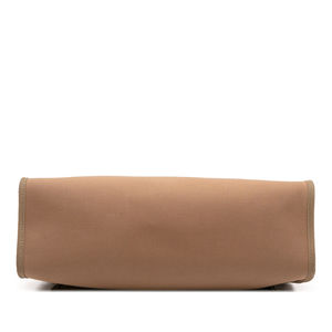 The Herbag Zip features a canvas body with leather trim, a flat leather top handle, a flat leather shoulder strap, a top flap with pull-through strap closure, an exterior back zip pocket, and a detachable interior zip pouch. It carries a B+ condition rating.