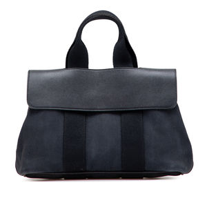 The Valparaiso PM features a canvas body, rolled handles, a leather front flap, a top stud closure, and an interior slip pocket. It carries a B+ condition rating.