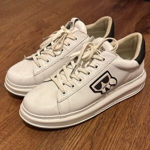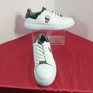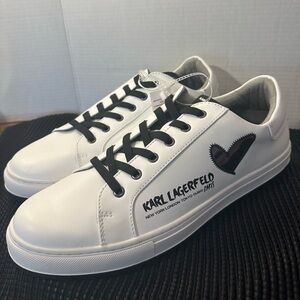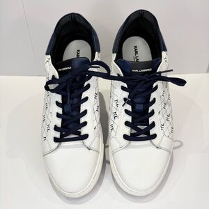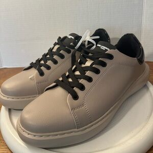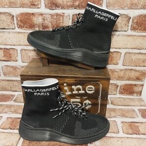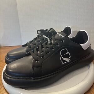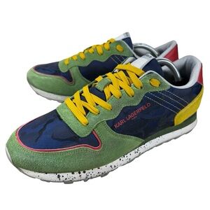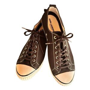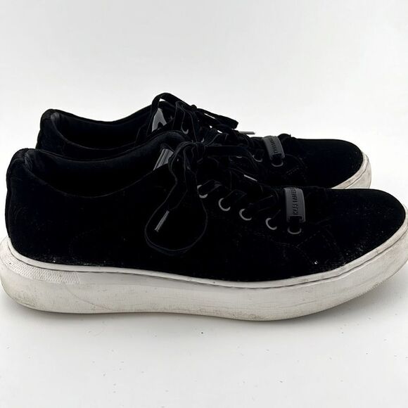 Pre-Loved Karl Lagerfeld Men US 8 Black Textile Leather Shoes Comfort Sneakers